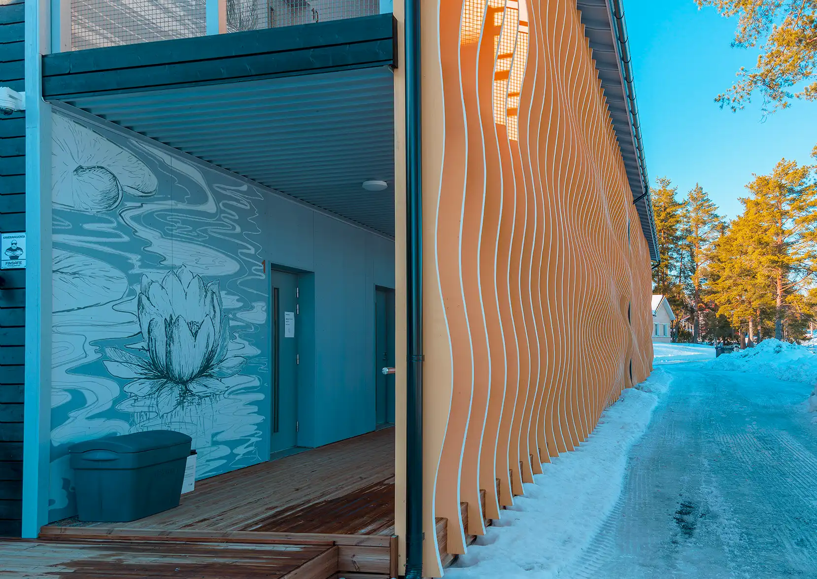 Serlachius Museum Art Sauna is a new architectonic perspective into the concept of Finnish sauna, Art Sauna stands on the shore of Serlachius Museum Gösta. The name Art Sauna is appropriate for this architecturally unique sauna building which houses both art and design.